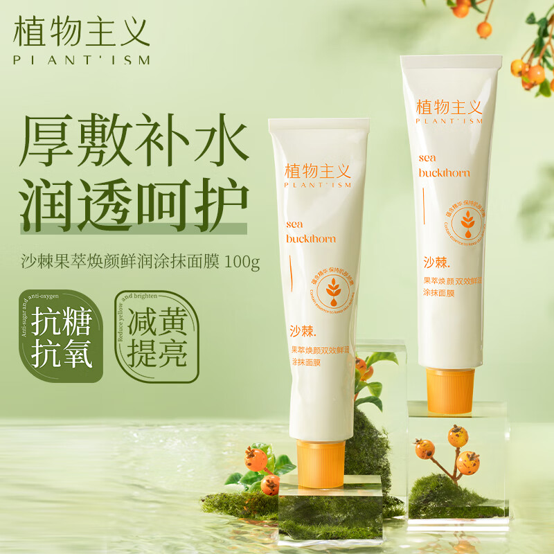 包邮 植物主义面膜沙棘果萃焕颜涂抹式面膜提亮补水保湿细致毛孔准孕妇护肤用品 沙棘果萃涂抹面膜100g